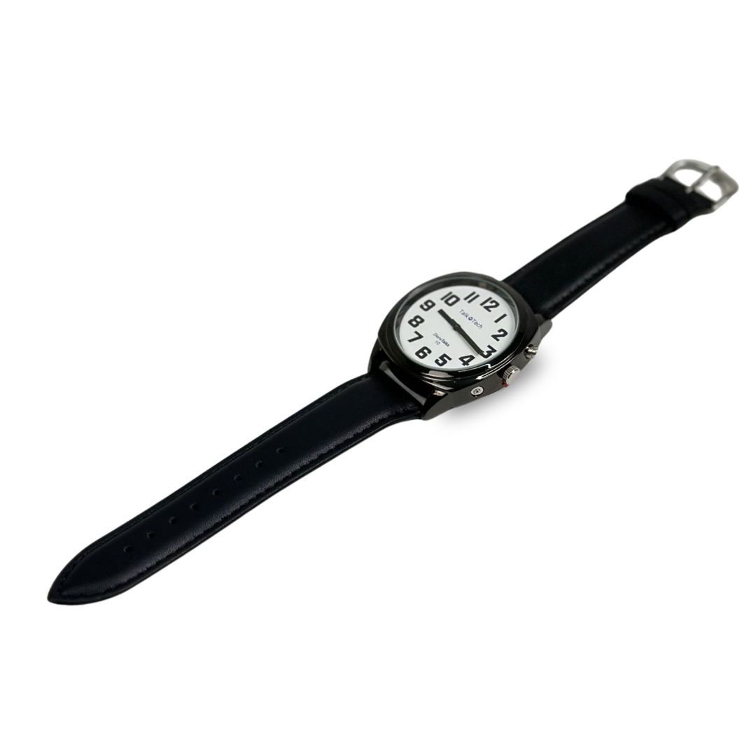 De DianaTalks Royal is het grootste en meest luxe sprekende horloge binnen de DianaTalks-serie. Dit hoogwaardige model is speciaal ontworpen voor mensen die blind of slechtziend zijn, of voor iedereen die de tijd graag duidelijk en eenvoudig laat uitspreken. De royale 43 mm witte wijzerplaat met contrastrijke zwarte cijfers zorgt voor uitstekende afleesbaarheid, zelfs bij verminderd zicht.