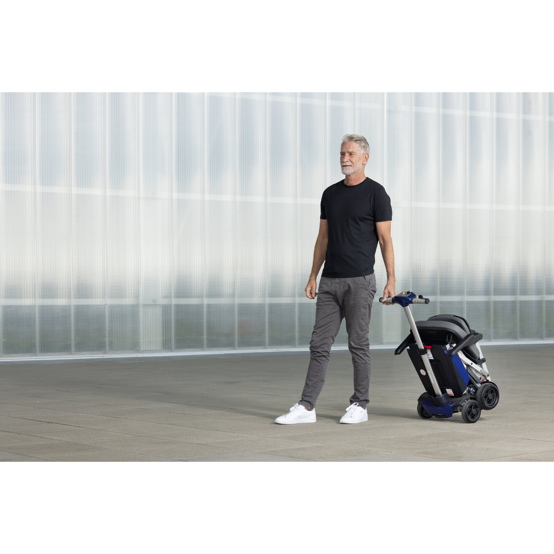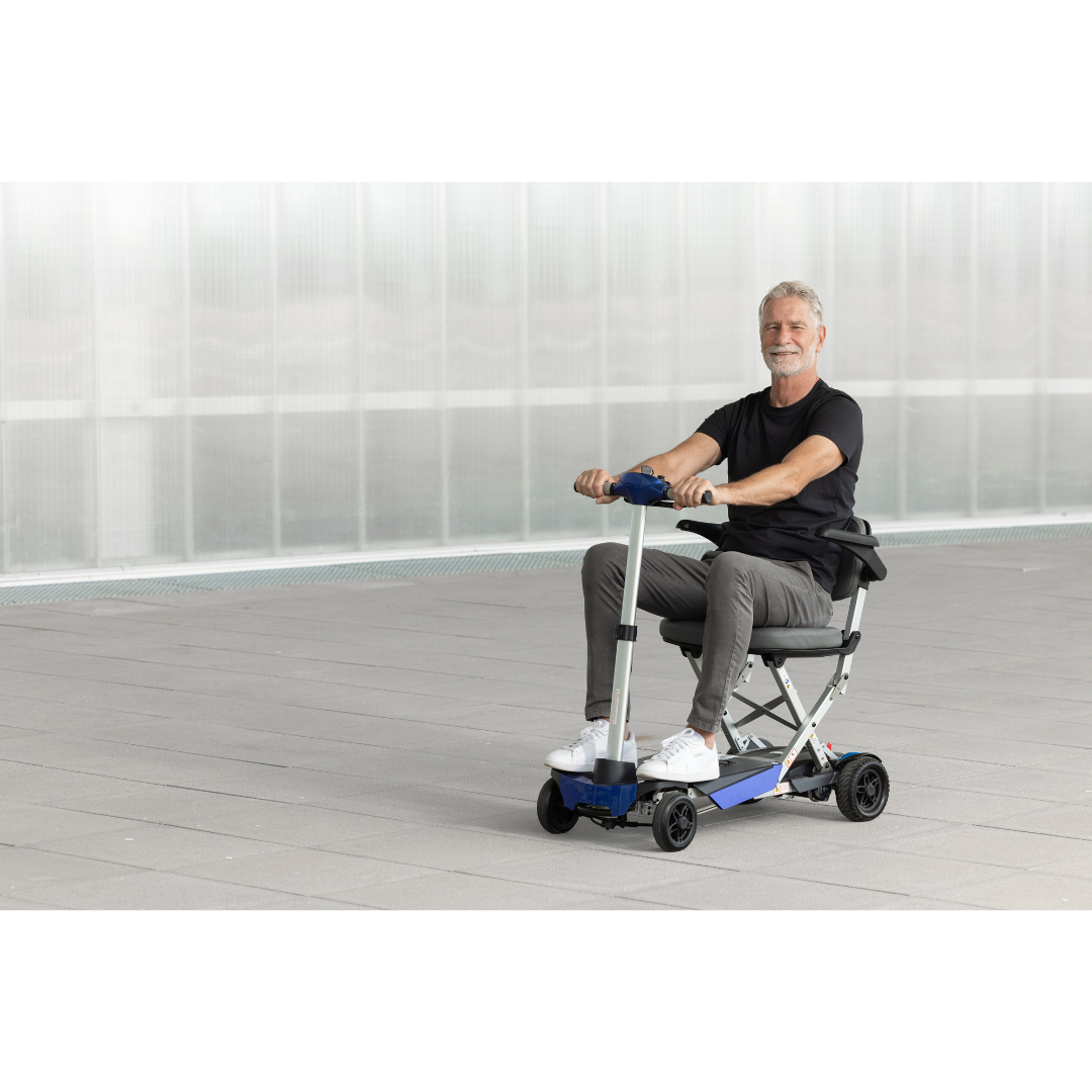 De bediening is intuïtief en geschikt voor iedereen. Het vouwmechanisme werkt snel en moeiteloos, zodat de scootmobiel binnen enkele seconden klaar is voor vervoer.