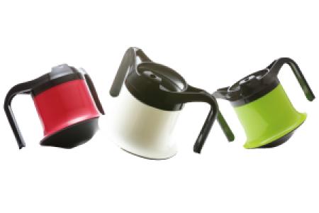 Drinkbeker met platte handgrepen en twee tuitdeksels
