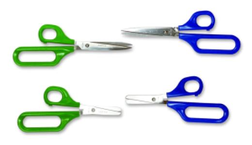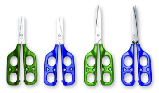 Zelfopenende schaar met 1 groot oog en 1 klein oog rond 45 mm links