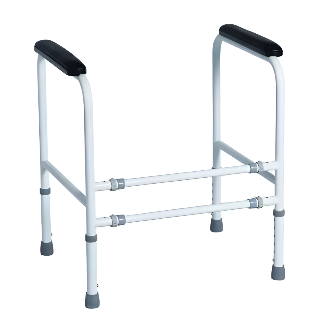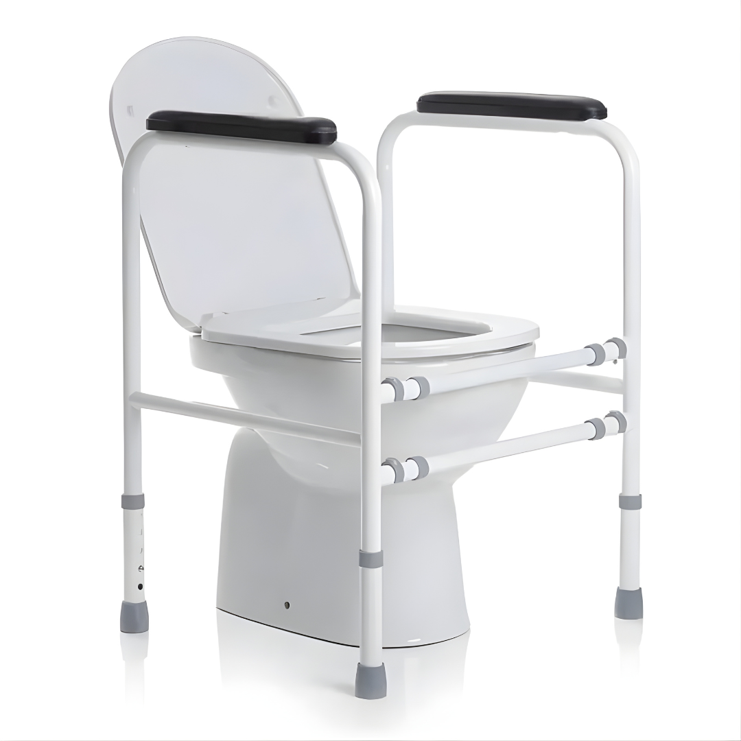 Het MultiMotion Toiletframe biedt extra steun en stabiliteit bij het opstaan en gaan zitten op het toilet. Ideaal voor ouderen en mensen met beperkte kracht of balansproblemen. Het frame is hoogte- en breedteverstelbaar, past op vrijwel ieder standaard toilet en staat stevig dankzij antislipdoppen. Gemaakt van duurzaam staal met witte poedercoating en eenvoudig te monteren en op te bergen.