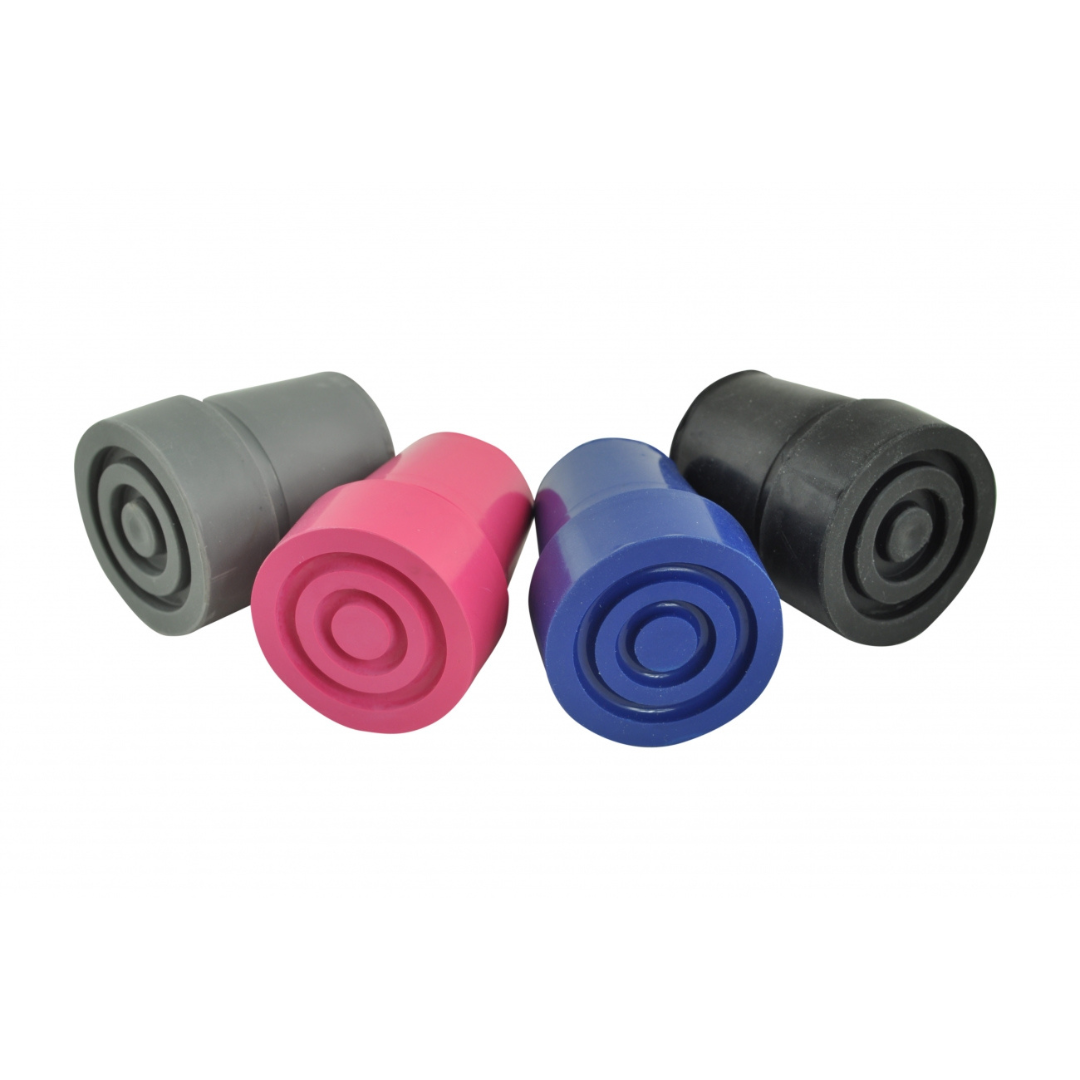 Dop voor wandelstokken en elleboogkrukken. In vier kleuren verkrijgbaar. Verpakt per 2 stuks.