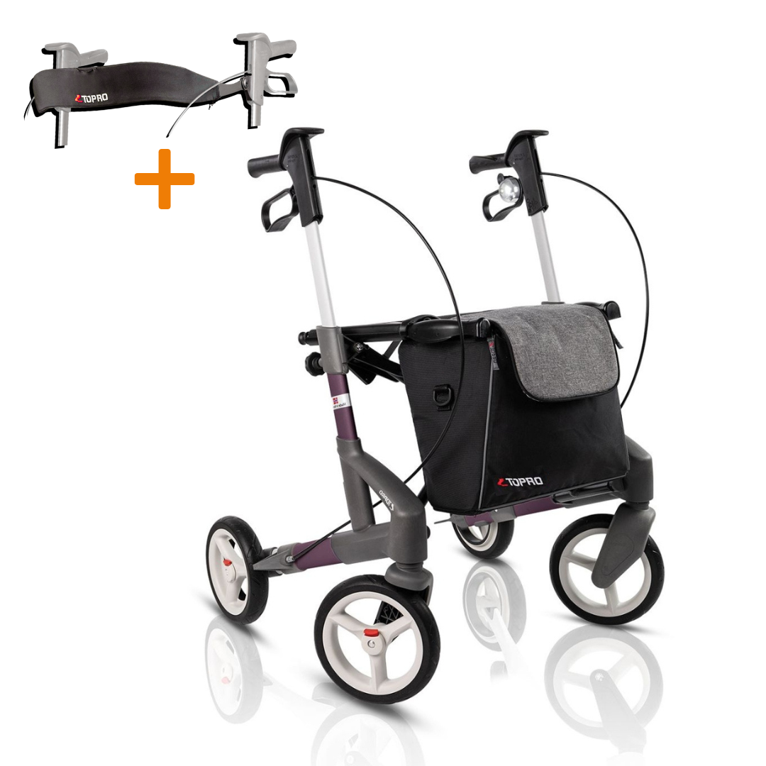 Het vernieuwde frame heeft een slanke en lichte uitstraling zonder concessies te doen aan de stabiliteit. De schokabsorberende wielen zorgen voor een soepele rit, waardoor de rollator geschikt is voor verschillende ondergronden. Dankzij het TOPRO Quick Release-systeem kun je eenvoudig de wielen verwisselen voor optimaal gebruiksgemak.