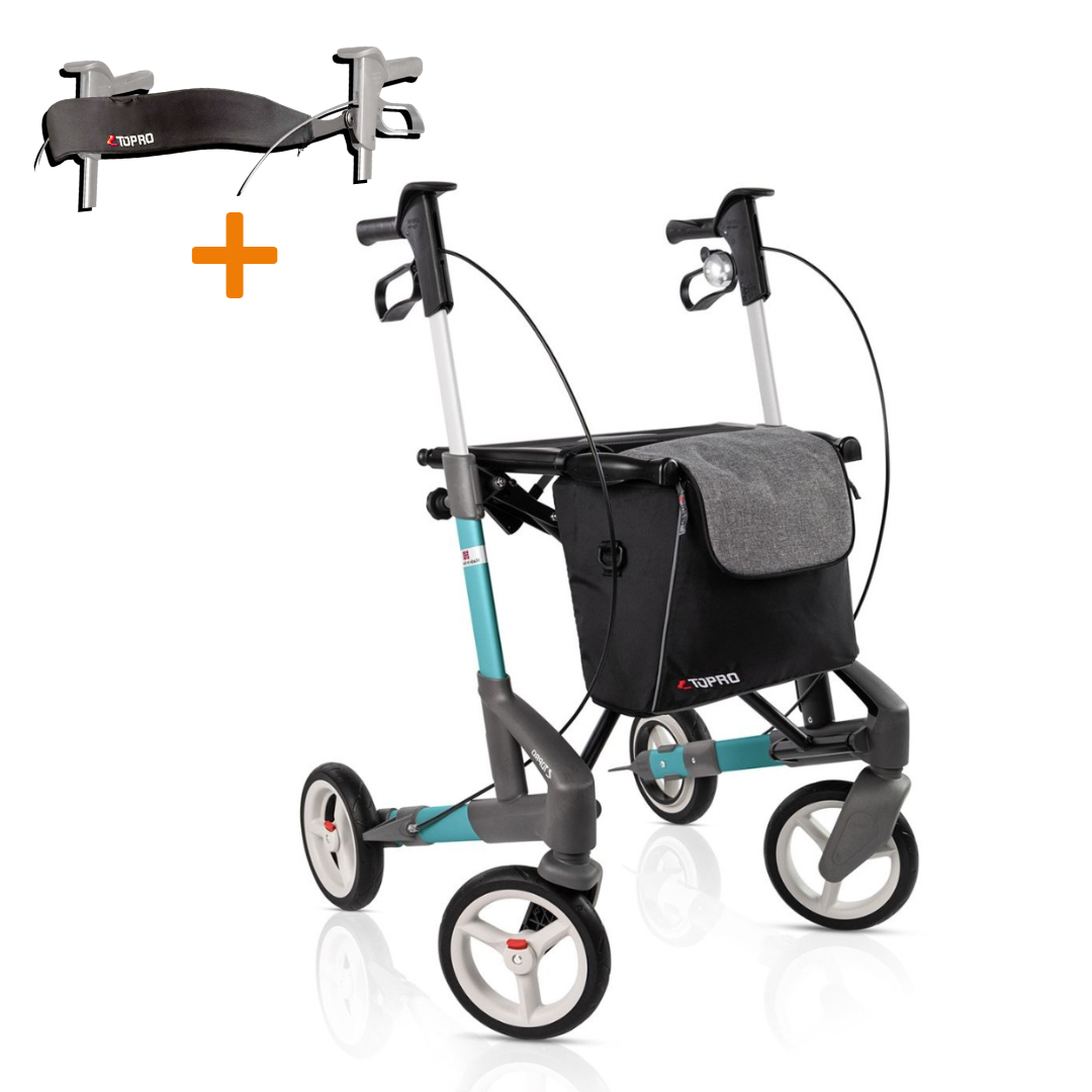 Het vernieuwde frame heeft een slanke en lichte uitstraling zonder concessies te doen aan de stabiliteit. De schokabsorberende wielen zorgen voor een soepele rit, waardoor de rollator geschikt is voor verschillende ondergronden. Dankzij het TOPRO Quick Release-systeem kun je eenvoudig de wielen verwisselen voor optimaal gebruiksgemak.