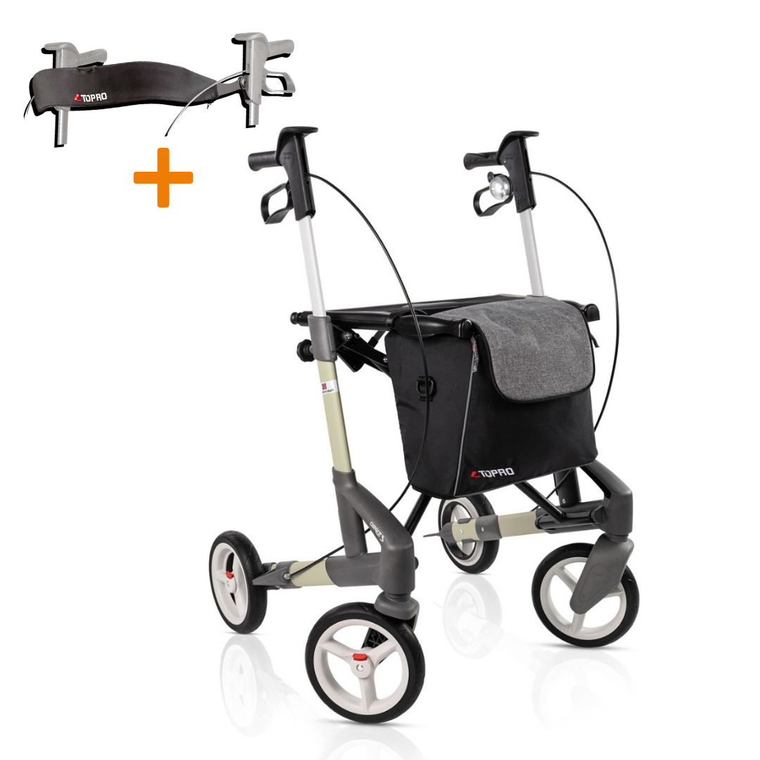 Het vernieuwde frame heeft een slanke en lichte uitstraling zonder concessies te doen aan de stabiliteit. De schokabsorberende wielen zorgen voor een soepele rit, waardoor de rollator geschikt is voor verschillende ondergronden. Dankzij het TOPRO Quick Release-systeem kun je eenvoudig de wielen verwisselen voor optimaal gebruiksgemak.