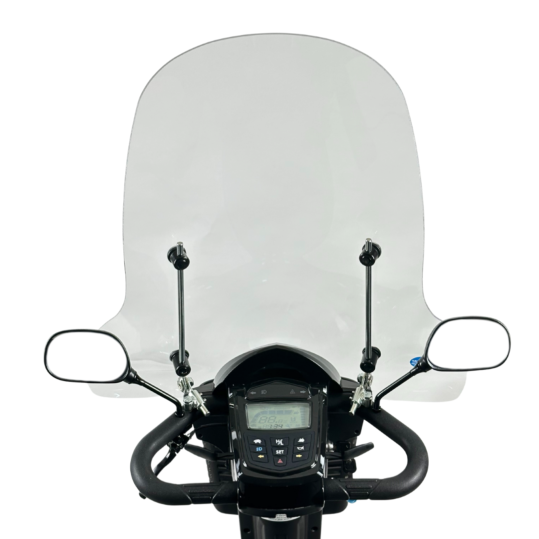 Met dit universele hoge windscherm geniet u van extra comfort tijdens elke rit met uw scootmobiel. Het scherm beschermt u tegen wind, regen, kou én insecten, zodat u altijd veilig en prettig onderweg bent – het hele jaar door. Dankzij het universele ontwerp past het scherm op de meeste scootmobielen.