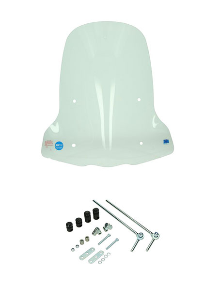 De stevige constructie en transparante afwerking zorgen voor een helder zicht op de weg. Het windscherm wordt gemonteerd op de spiegelaansluiting. Met het meegeleverde montageplaatje kunt u de spiegel gewoon blijven gebruiken, zonder dat het scherm in de weg zit.